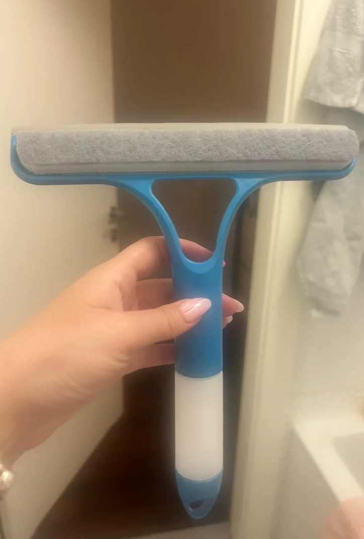 3-in-1 Tool: Squeegee blade, scrubbing sponge, and water pour spout.