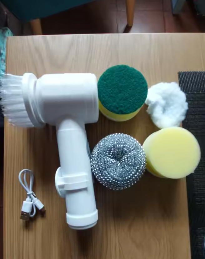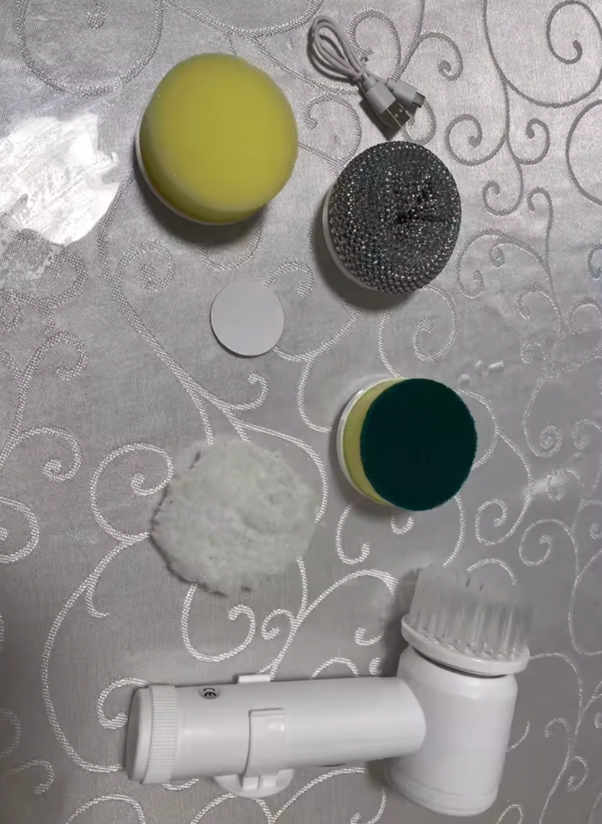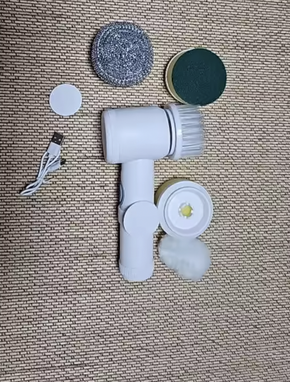 Effortlessly tackle tough dirt with this 5-in-1 Electric Spin Scrubber, featuring five heads for versatile cleaning. This lightweight, USB-rechargeable tool makes bathroom and kitchen scrubbing a breeze.